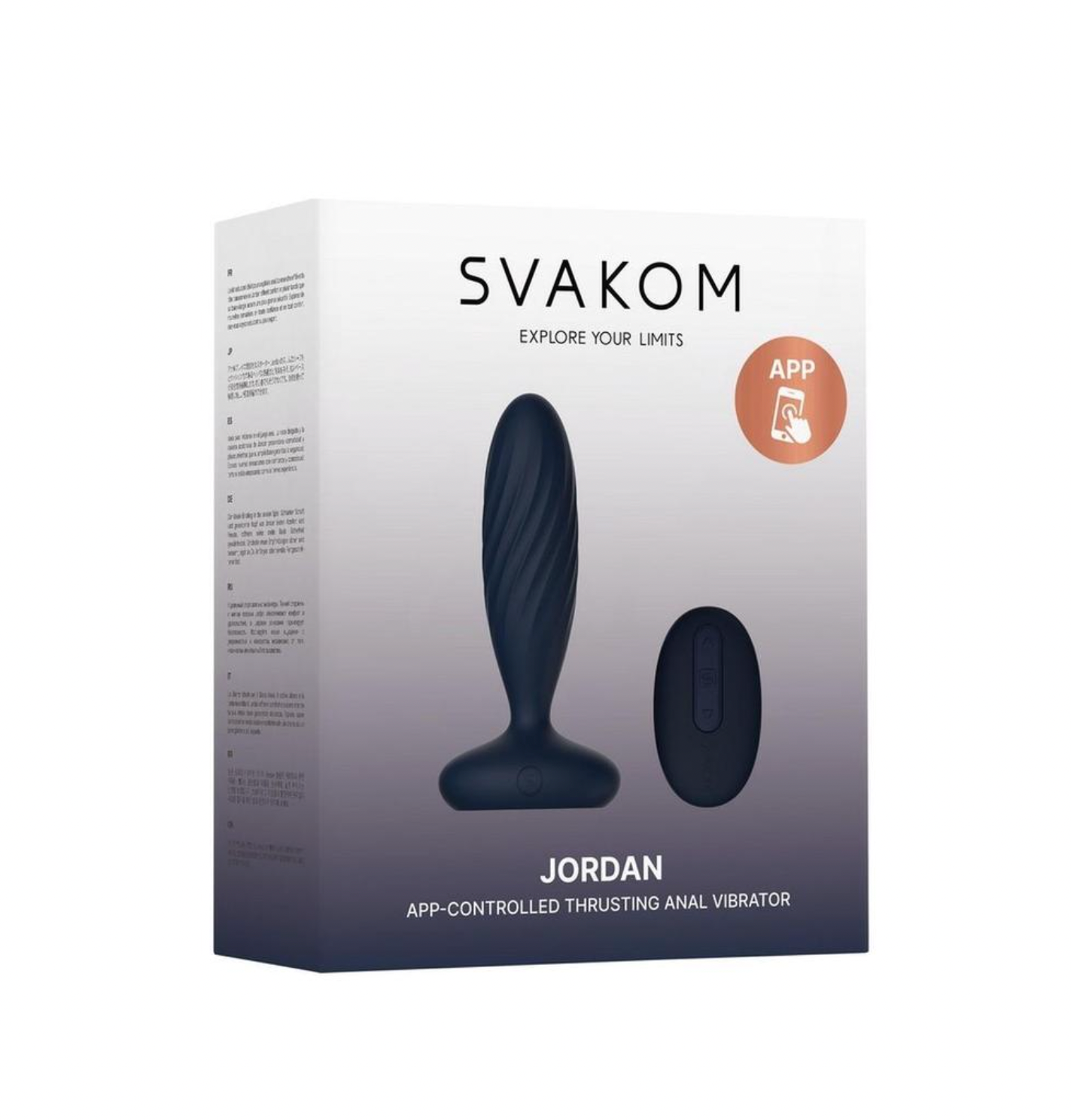 Discover better-than-real anal play with thrusting and vibrating stimulation. Check out the Svakom Jordan's comfortably slim, firm shaft, cushioned head & safe wide base. •Magnetic remote control attaches to the base, which has colour-changing lights.